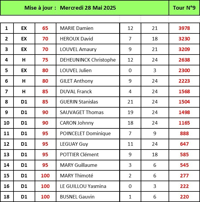 Le classement individuel de tous les joueurs de Chailloué à l'issue de la Phase Retour.
